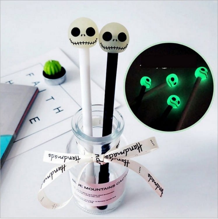 Glow Skull Head Ballpoint Pen,Creatively Skull Shaped Design,Very Funny and Cute;Best Gift for Students, Classmates, School, Home or Office Supplies, Business, Birthday, Christmas, Hallowmas, Decoration, Stage Props etc.
