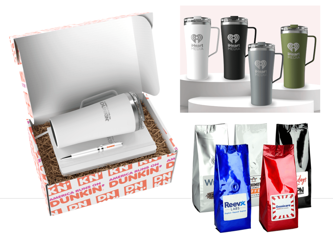 A curated coffee-themed kit with your logo tastefully embedded into items they’ll actually use? That’s a brand experience.