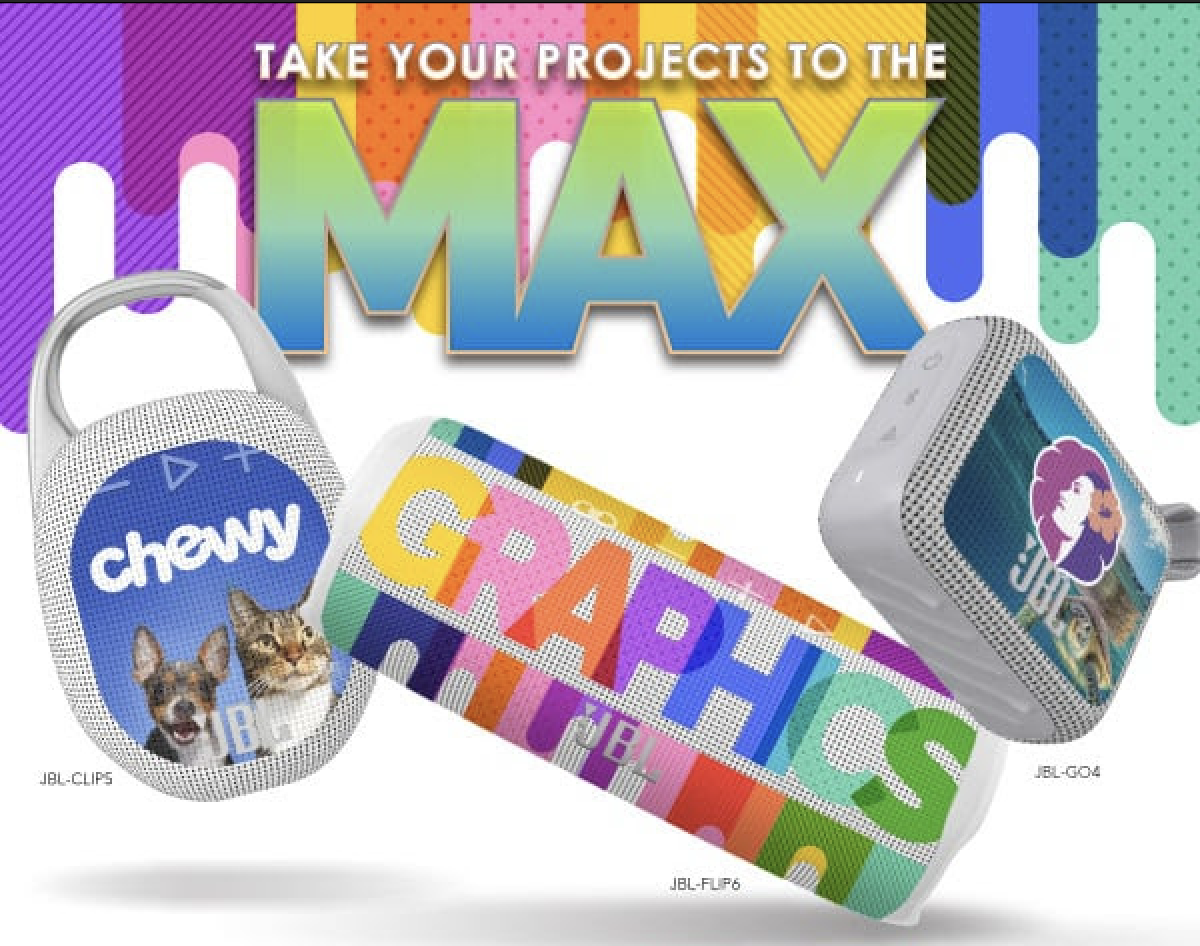 - JBL Flip 6 — $132.95 The Flip 6 is where ColorMAX first earned its reputation, and it’s still a strong choice for programs that want the full-wrap look at a slightly lower price point. Same waterproof portability, same JBL Pro Sound, same 4-color edge-to-edge decoration. Starting at 6 units.